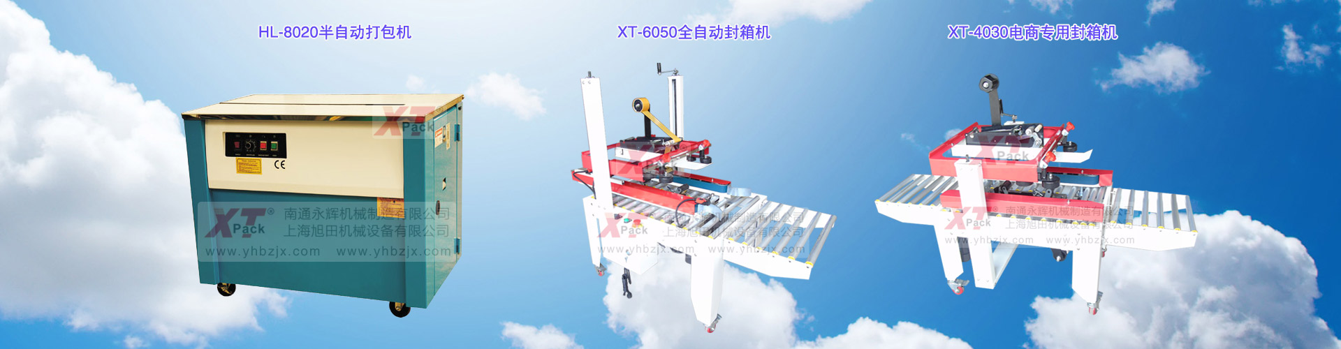 主要产品有:全自动打包机、半自动打包机、手持打包机、全自动封箱机、左右驱动封箱机、电商专用封箱机、折盖封箱机、封箱打包一体机,及各类配套机械、包装材料等。
